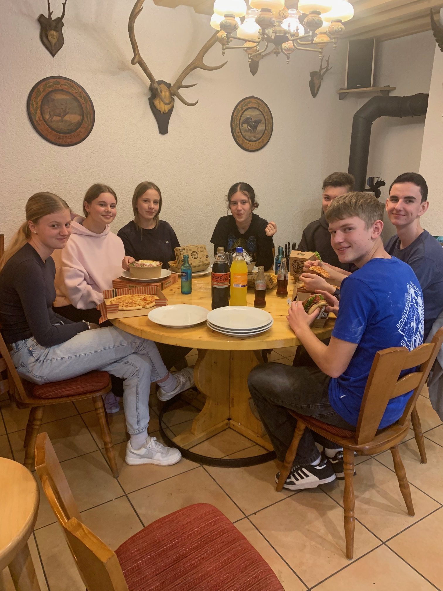 Nachdem der Jugendschützenkönig und die beiden Knappen geehrt wurden legten alle eine Pause ein um sich mit Pizza zu stärken.